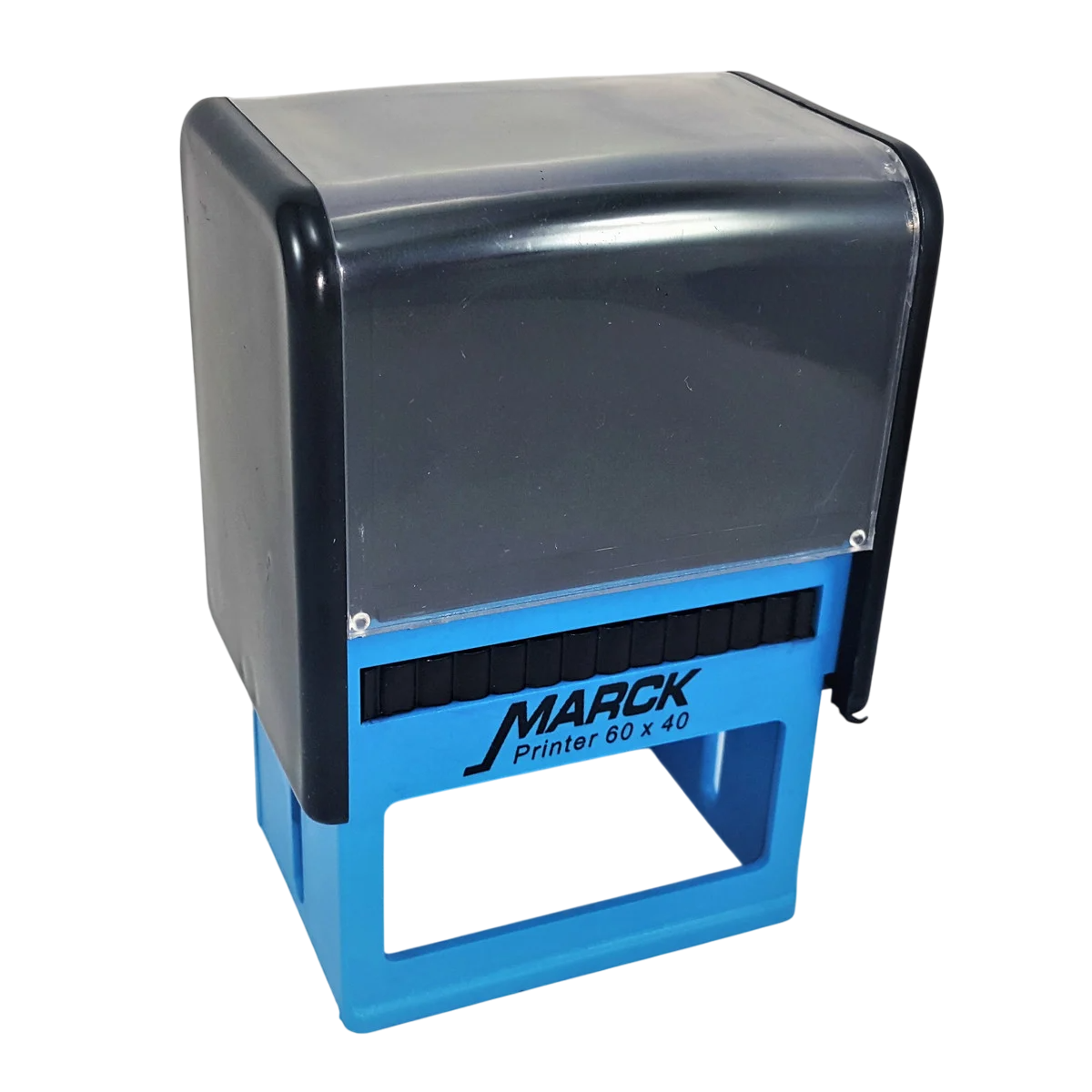O modelo MARCK PRINTER é um carimbo automático de grande formato, perfeito para quem precisa destacar informações completas em um só carimbo.